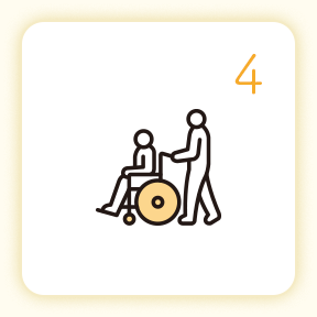 外出が難しい方の通院や買い物、社会参加をサポートします。安全に移動できるよう介助し、外の世界とのつながりを大切にします。利用者の生活の幅を広げ、自立した日常を支えるお手伝いをします。